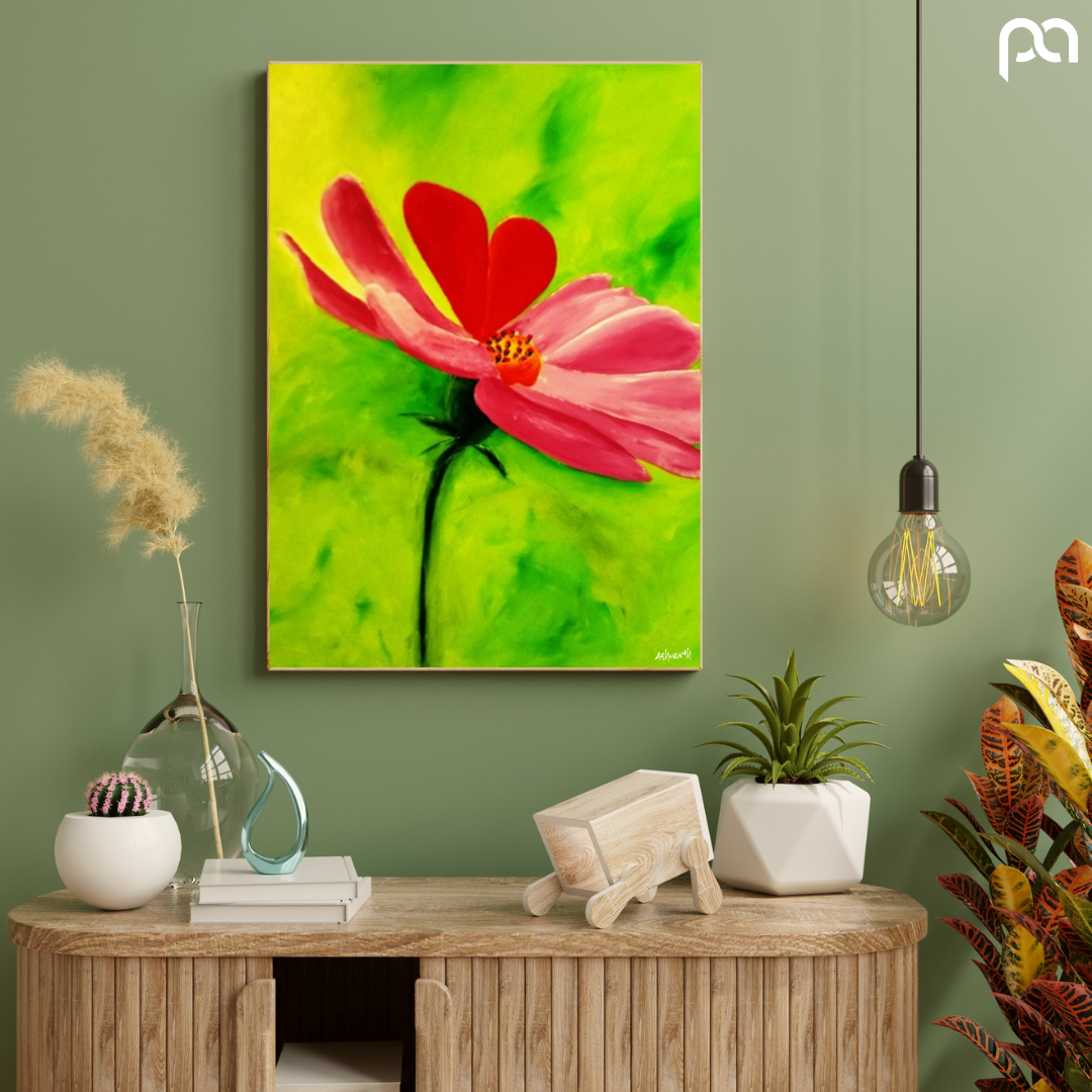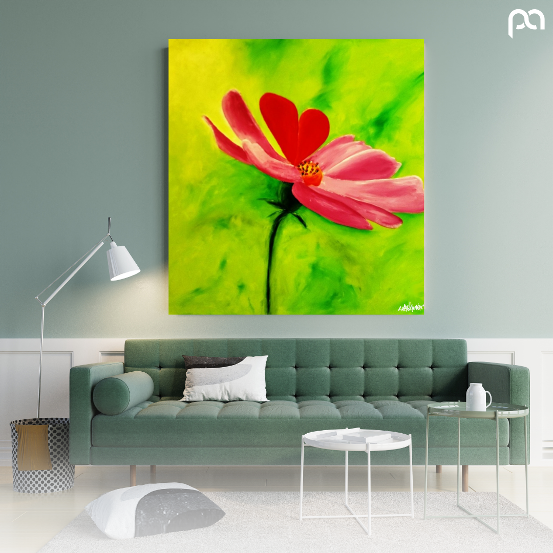 "Love + Wonder #6" Love blooms is a captivating 36" x 24" painting that will resonate in your space. This artwork focuses on new life.... a single, striking flower, expertly rendered to convey a sense of love and wonder. The flower's petals display a vibrant array of colors, but one petal, in particular, draws the viewer's eye—it is shaped like a delicate love heart, symbolizing the powerful emotions that the flower represents. Set against an abstract lime green blended color background, the flower's bold presence is further accentuated, offering a visual representation of the feelings that bloom within us when we experience love. This enchanting artwork invites viewers to reflect on the beauty and transformative power of love while marveling at the intricacies of nature.